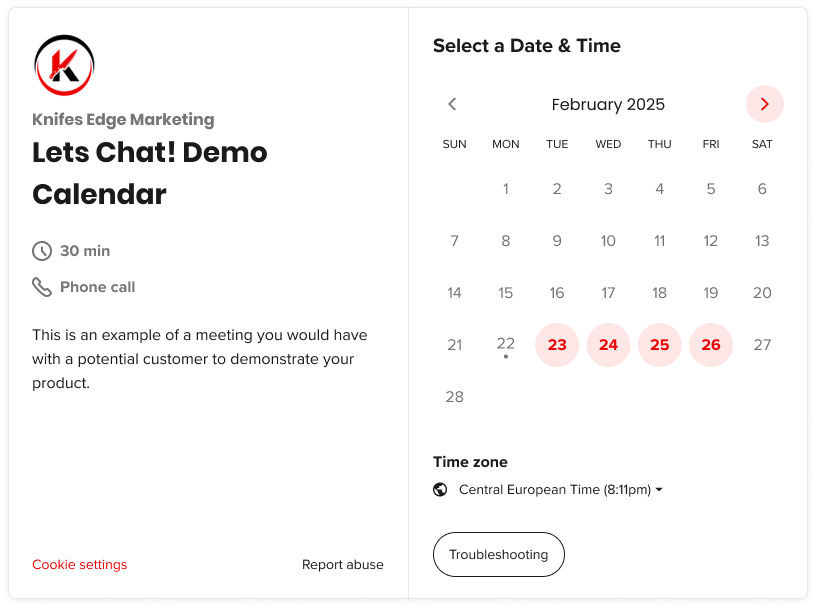Lets Chat! Demo Calendar